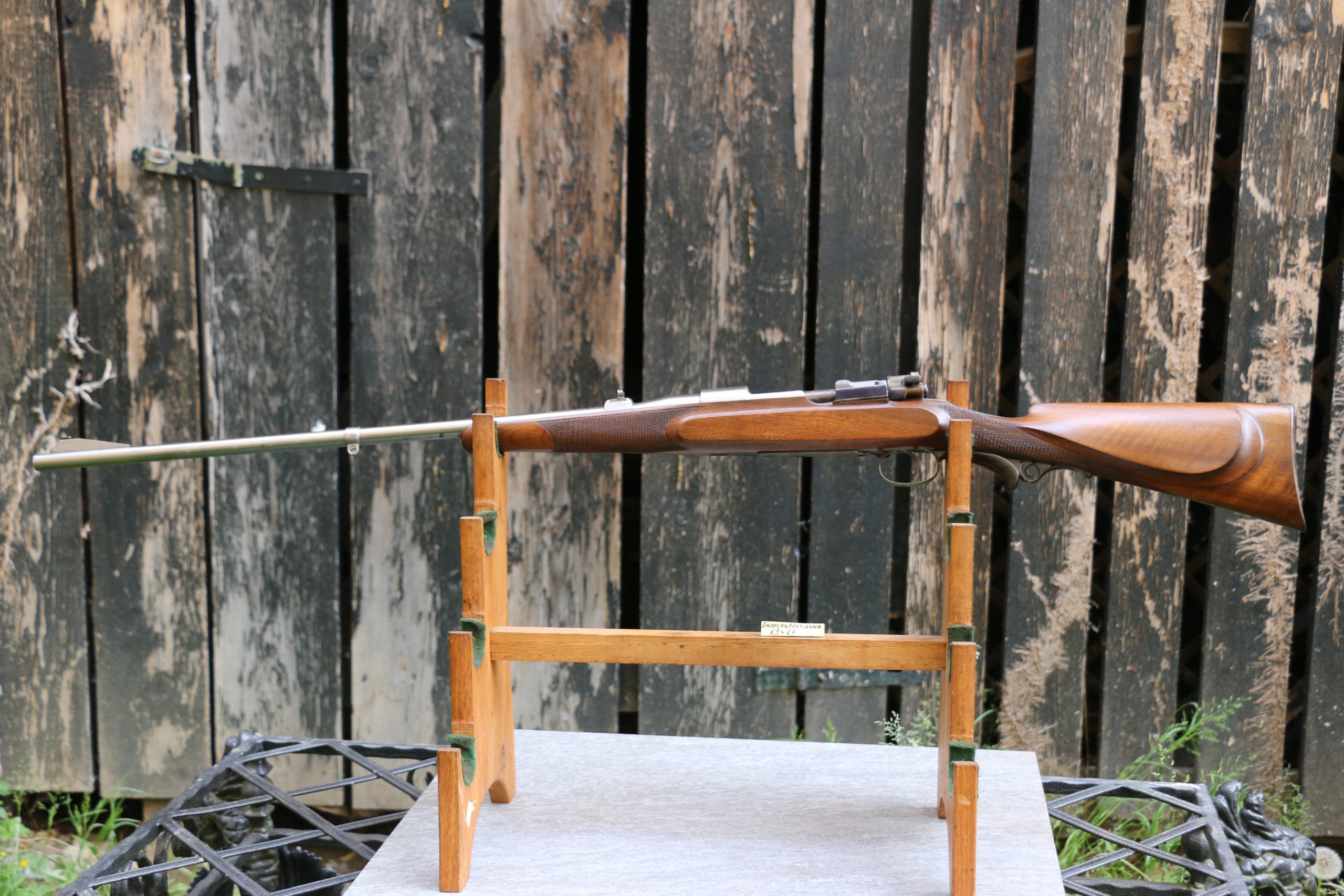 Ta Mauser M98 v kalibru 6,5×68 je v celoti obnovil in izpopolnil Markus Moll v Ferlachu, v skladu s tradicionalno puškarsko umetnostjo. Puška ima čudovito oblikovano angleško kopito, ki se ponaša z vitkim profilom in izjemnim ravnotežjem za natančno rokovanje. Poseben poudarek daje ročno izdelano sprožilno varovalo iz roga, ki orožju dodaja klasično eleganco in pridih ekskluzivnosti. Skupaj z natančno obdelavo, usmerjeno na funkcionalnost, estetiko in rokodelstvo, ta edinstveni kos predstavlja vrhunec avstrijske puškarske tradicije.